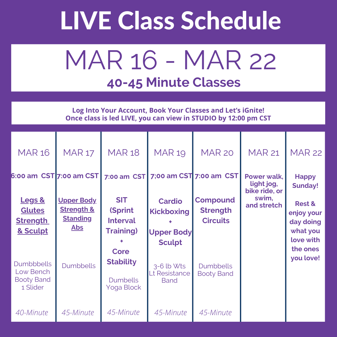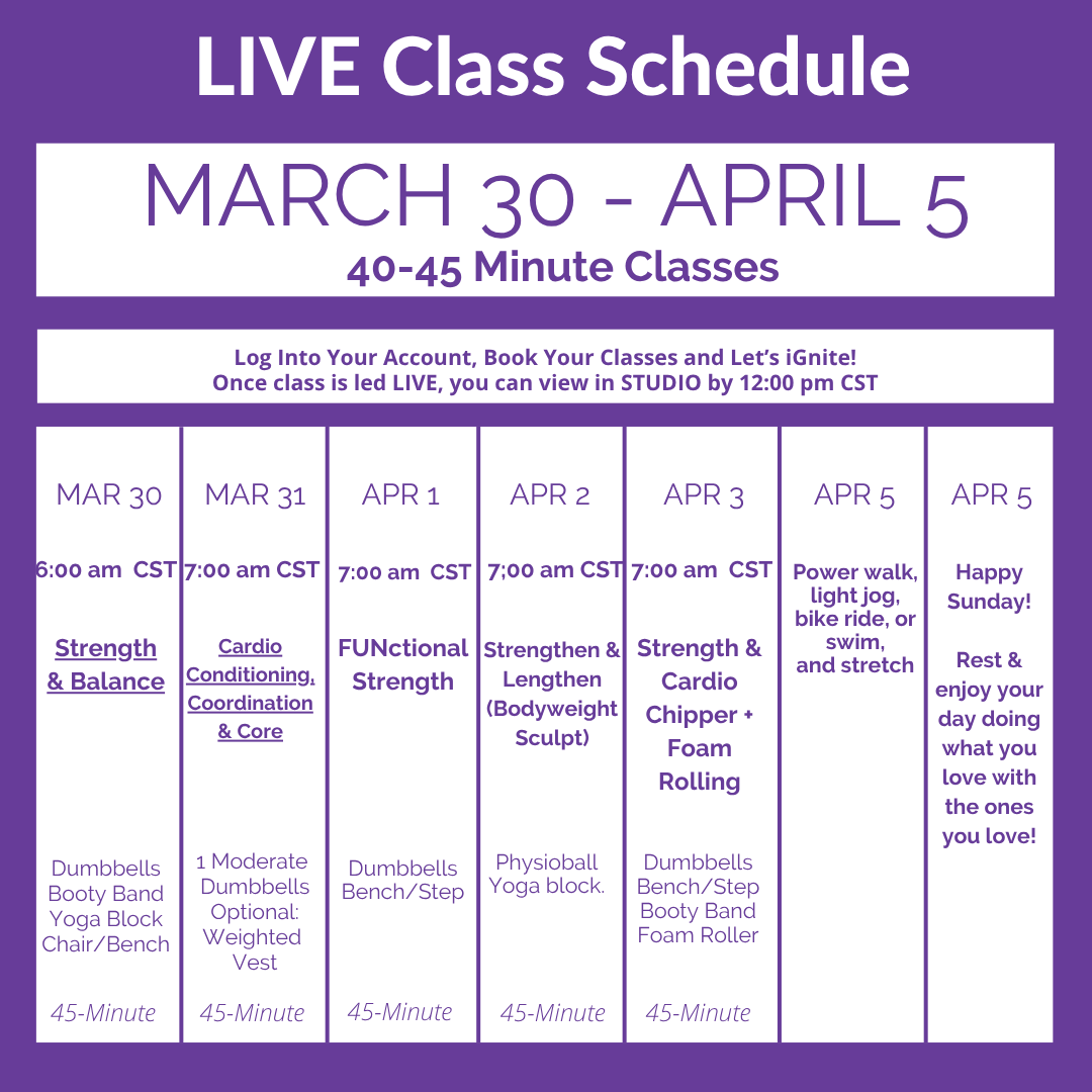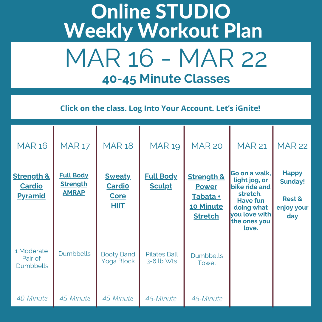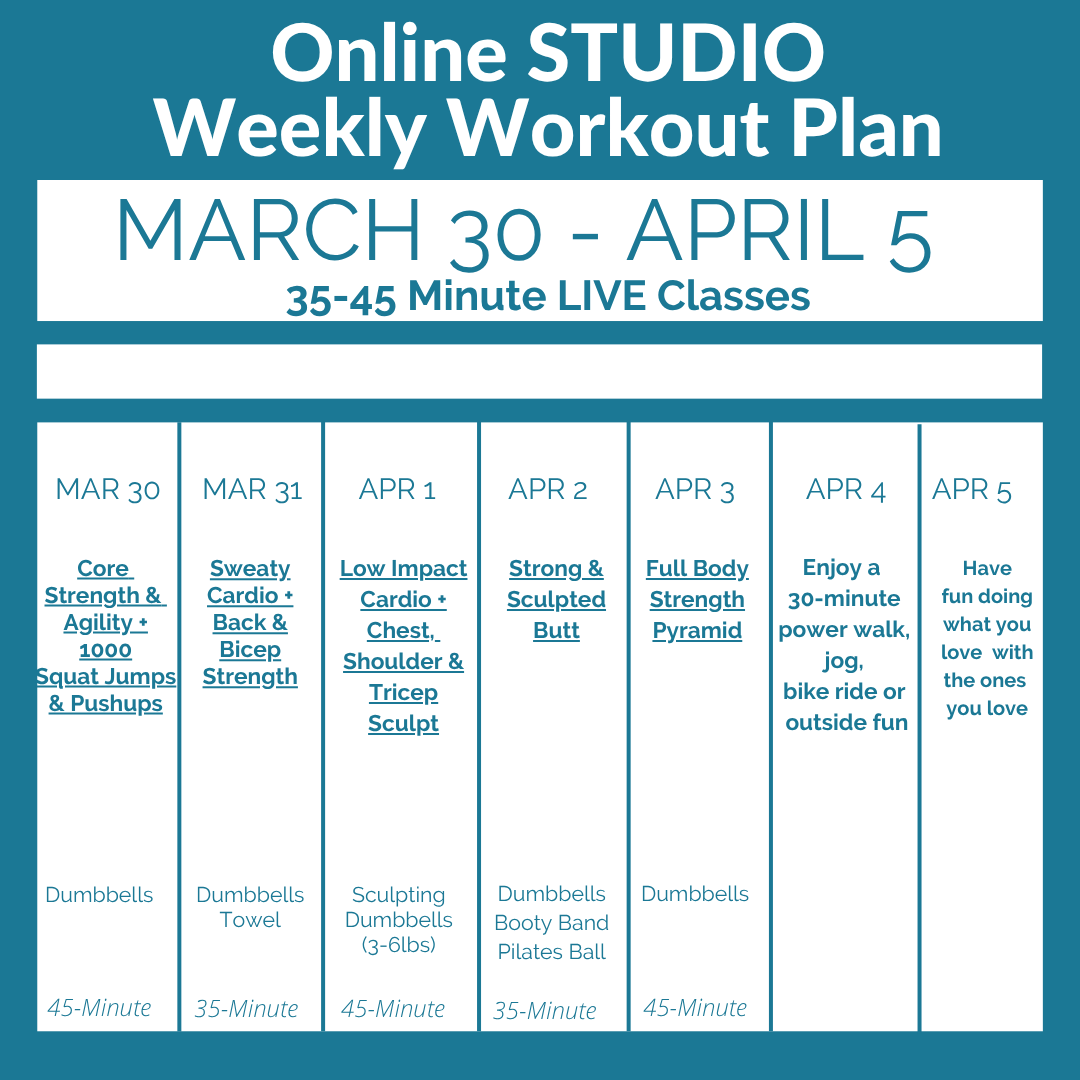While our Online STUDIO has hundreds of classes you can choose from, we fully understand not wanting to make another decision! This is why we create a schedule for you, so all you have to do is click on the link and you’re taken directly to the class. Or, if you missed the daily LIVE class, our goal is to get it into the Online STUDIO by noon at the very latest, so you can simply click on the link and be taken to the previously LIVE class.