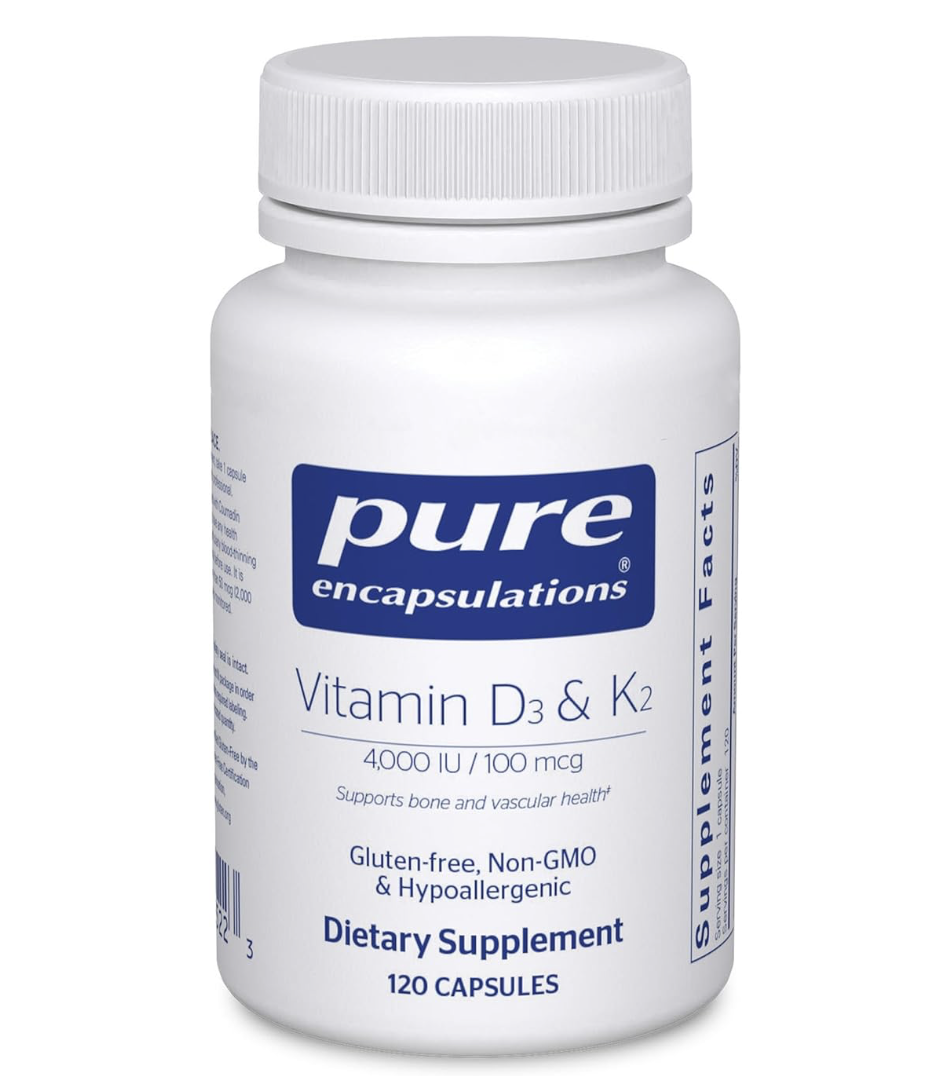 These two vitamins work best together, and I take them in a combined form: Vitamin D3 + K. They support bone health, immunity, and overall mood—especially important when I’m not getting as much sun.